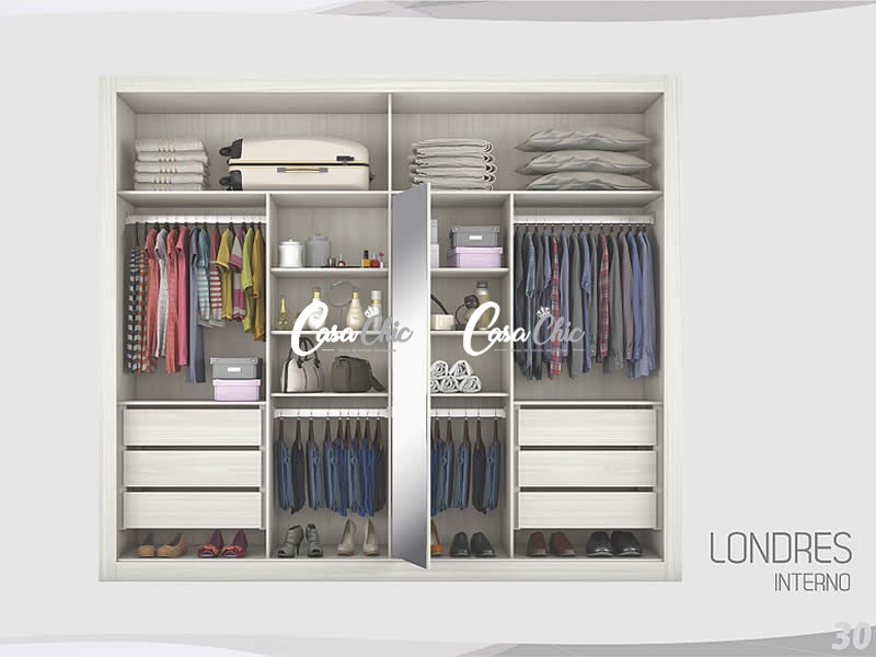 Disponível em 03 cores. O Guarda Roupa Armario Roupeiro Mademarcs Europa Londre possui o sistema Flex Color nas portas, esse sistema dupla face permite que você escolha entre duas opções de cores de portas. Assim quando você for montar seu guarda roupa você escolhe as cores.