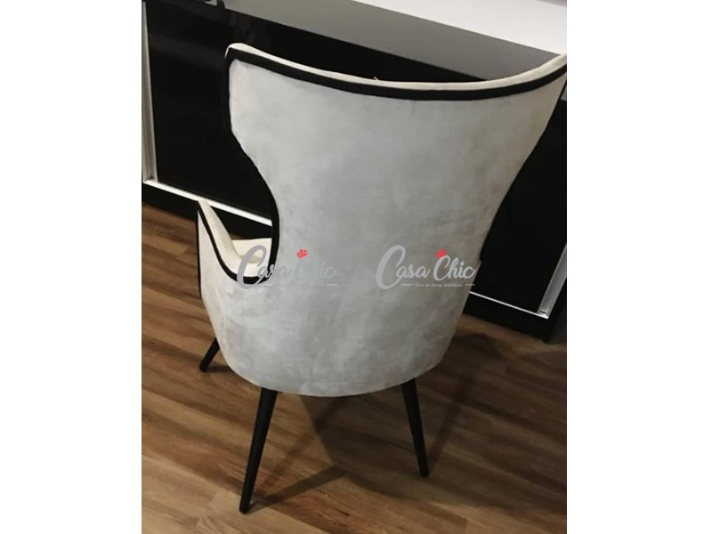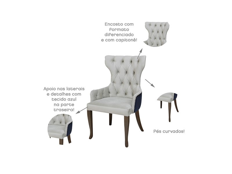 Encosto possui forma oval e conta com apoio para os braços nas laterais